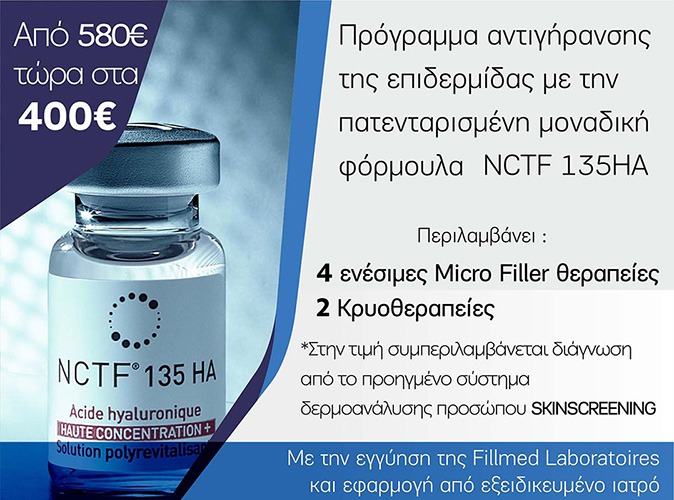 Το NCTF® 135 HA είναι αποκλειστικό αντιγηραντικό και πολυαναζωογονητικό σύμπλεγμα από τη FILLMED με παράγοντες που αναζωογονούν όλες τις στοιβάδες της επιδερμίδας για την πλήρη ανάπλαση της.
