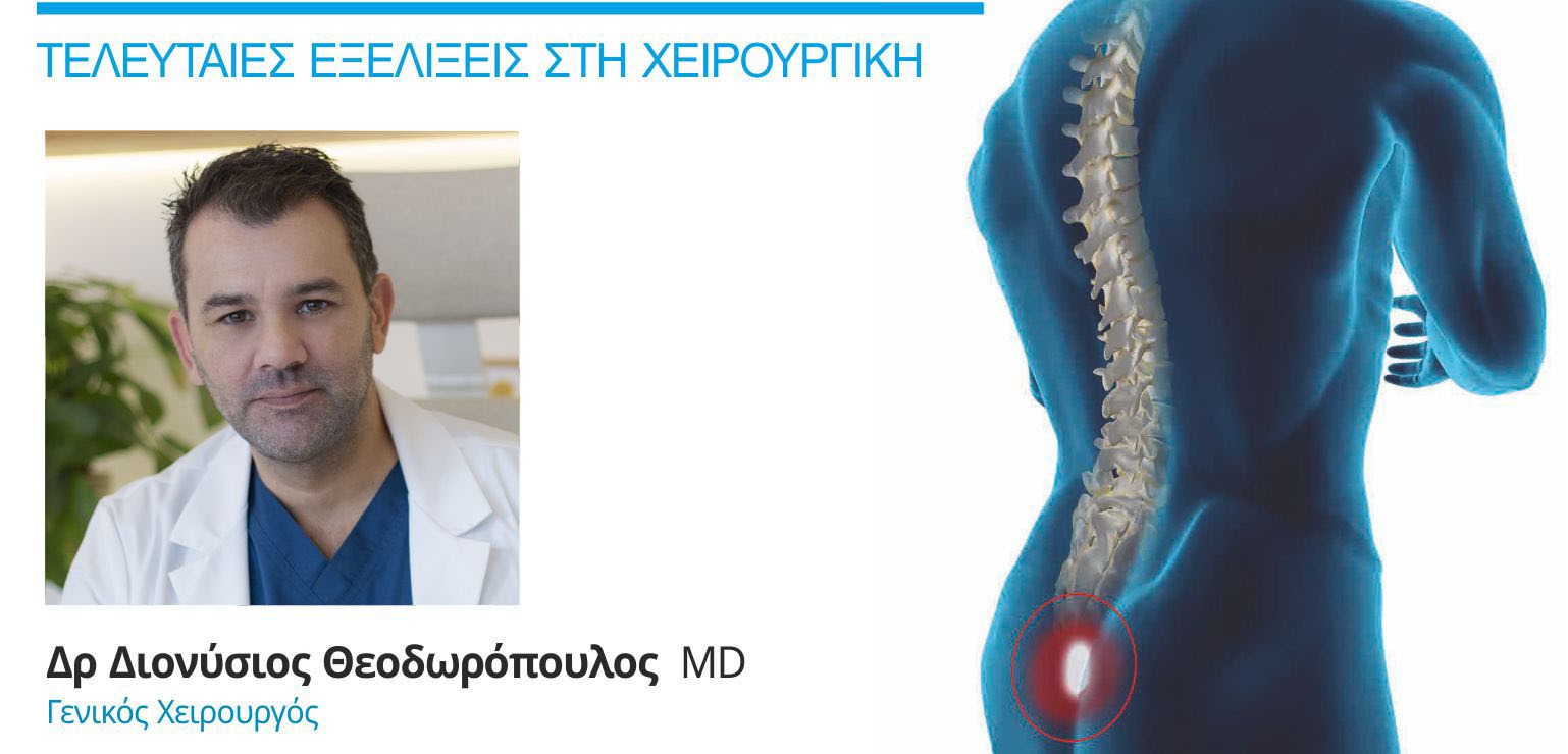 O Dr. Θεοδωρόπουλος Διονύσιος είναι Γενικός Χειρουργός με πολυετή εμπειρία 19 ετών σε πληθώρα χειρουργικών επεμβάσεων, όπως είναι η λαπαροσκοπική και η ανοικτή μέθοδος. Ειδικεύεται στην λαπαροσκοπική εκτομή της κύστης κόκκυγος, την αντιμετώπιση και θεραπεία των αιμορροΐδων και τις επεμβάσεις χολοκυστεκτομής.